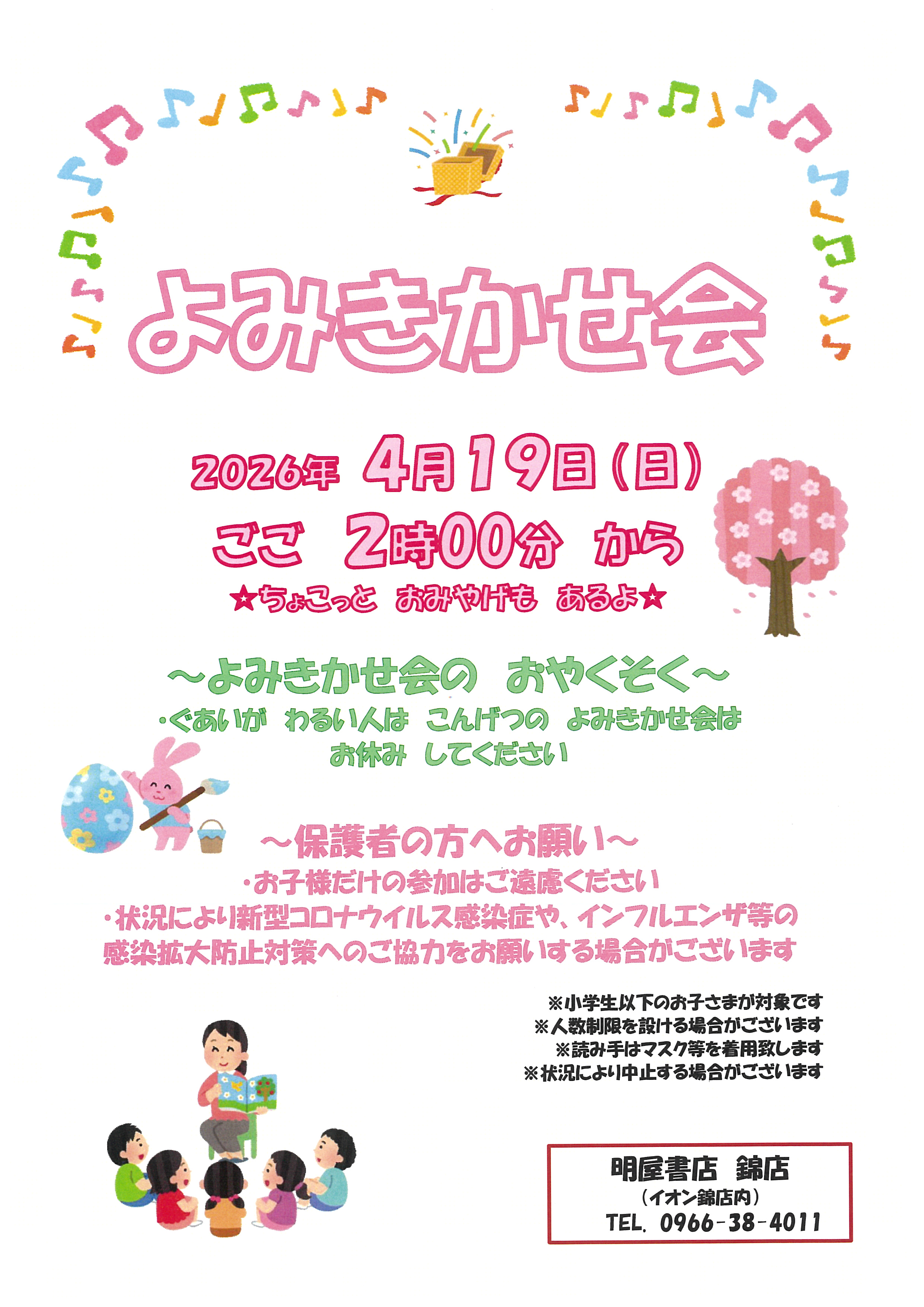 明屋書店(イオン錦店内)の「よみきかせ会」について (4/19)