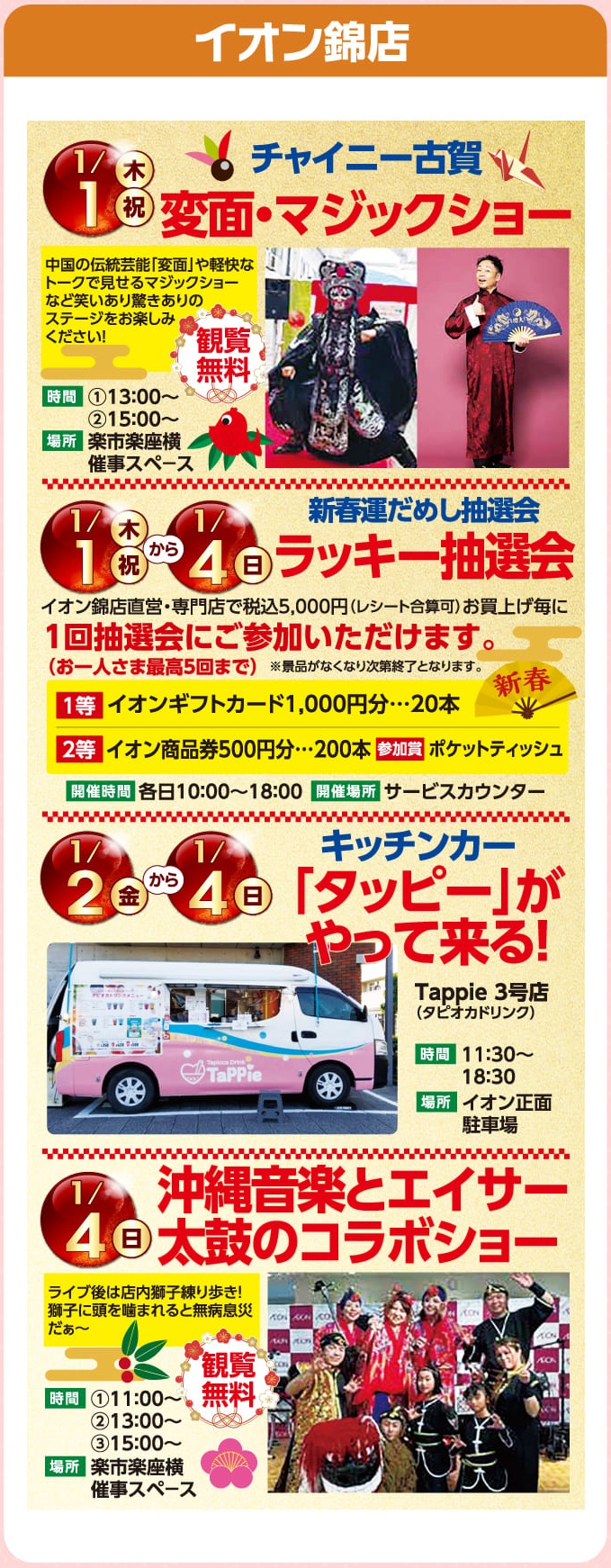 イオン錦店より楽しいイベントのお知らせ(1/1-4)